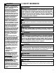C. TROUBLESHOOTING ! WARNING DISCONNECT ALL POWER TO UNIT BEFORE SERVICING. CONTACTOR MAY BREAK ONLY ONE SIDE. FAILURE TO SHUT OFF POWER CAN CAUSE ELECTRICAL SHOCK RESULTING IN PERSONAL INJURY OR DEATH. SYMPTOM POSSIBLE CAUSE Unit will not run • Power off or loose electrical connection • Thermostat out of calibration-set too high • Defective contactor • Blown fuses • Transformer defective • High pressure control open (if provided) • Interconnecting low voltage wiring damaged.