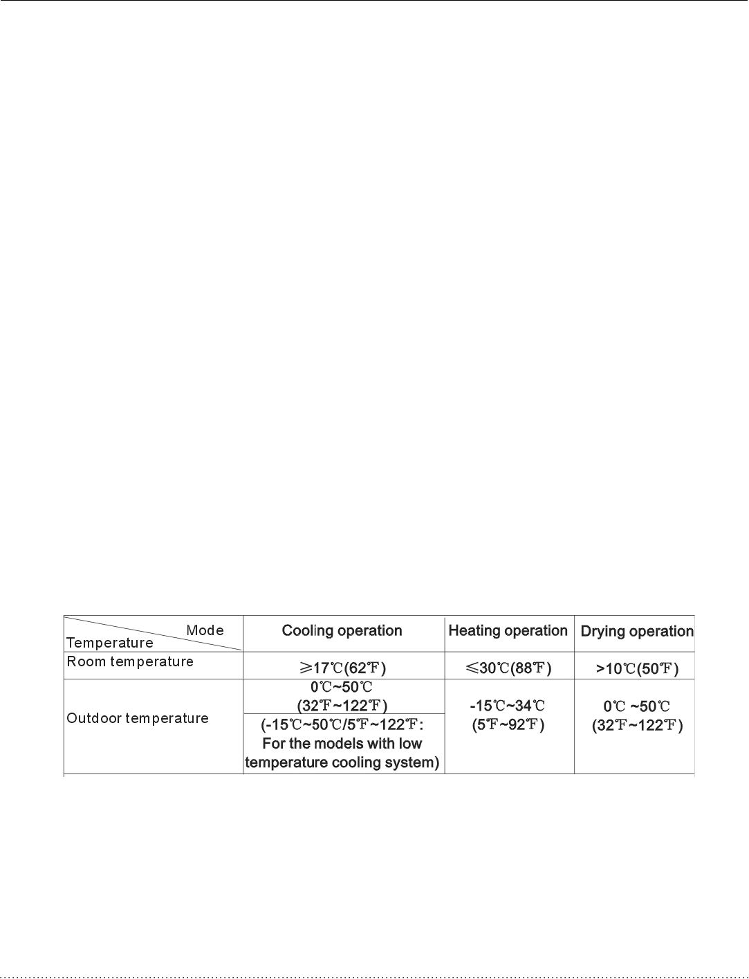 1. Operation of air conditioner beyond the above conditions may cause certain protections to occur.