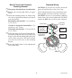 Continuación de ajustes . . . ❒ Afloje los dos tornillos de mano. Estime la dirección para apuntar el detector y ajuste los dos tornillos de mano tan sólo lo suficiente como para sostener el detector en su sitio. NOTA: El tornillo de arriba hace que el detector gire de lado a lado. El tornillo de abajo hace que el detector gire de arriba abajo. ❒ Camine por el área de cobertura dándose cuenta dónde está cuando las luces se prenden (además, el LED destellará varias veces cuando detecte movimiento).