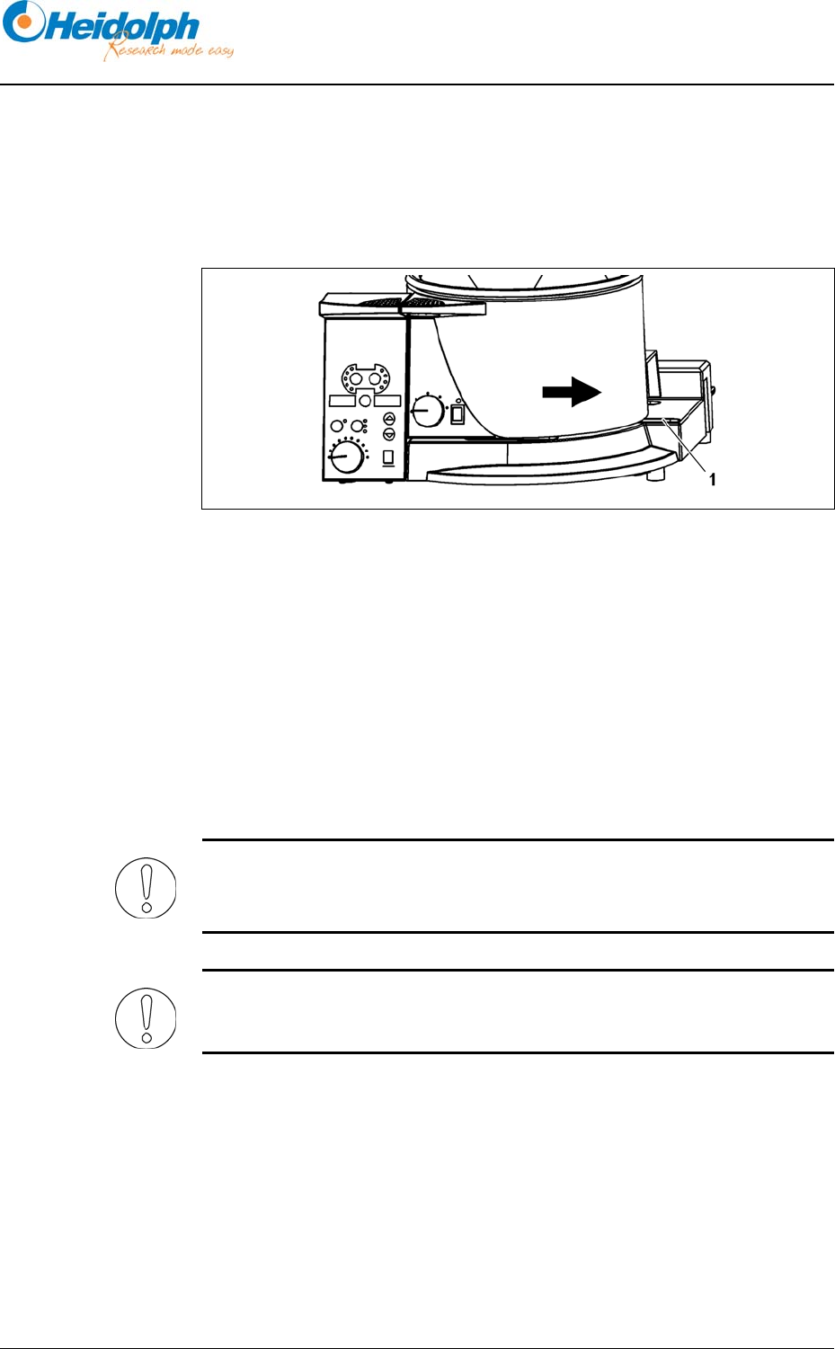 Place the feet of the heating bath in the tracks (1). Ensure that the controls