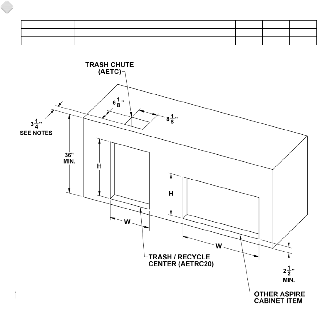 3-1/4” DIMENSION FOR TRASH CHUTE IS MEASURED