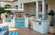 OUTDOOR LIVING SUITES Available in 8' and 12' models (appliances not included) Raised bar top Electrical outlets Custom countertop options 12' Model with power burner Monogrammed corner panels 12' Model with side burners Hestan Outdoor Living Suites transform your patio into a well-stocked oasis with cutouts for grills, side burners, power burner, storage, refrigeration or the all-important beverage dispenser. It can also accommodate your egg shaped smoker/grill.