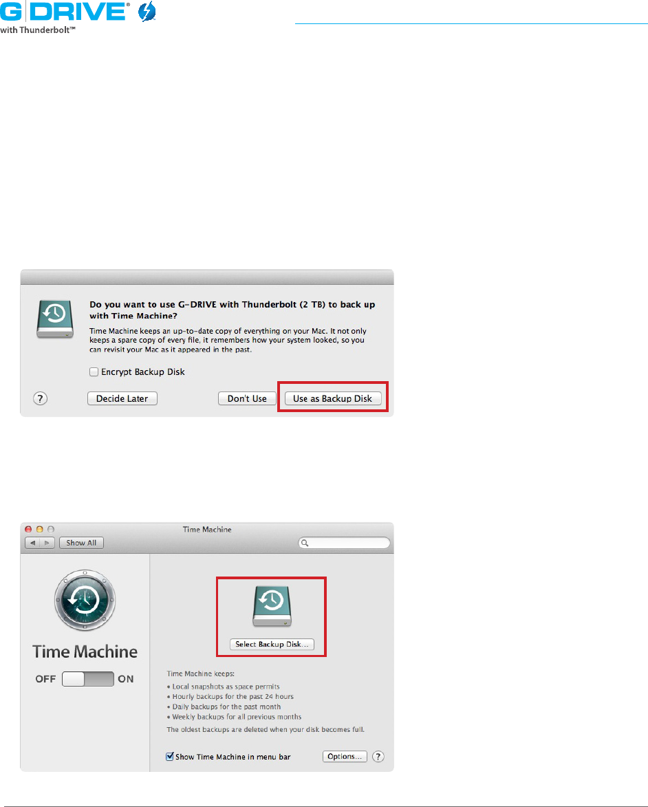 1. When you attach your G-DRIVE with Thunderbolt for the rst time, the Time Machine