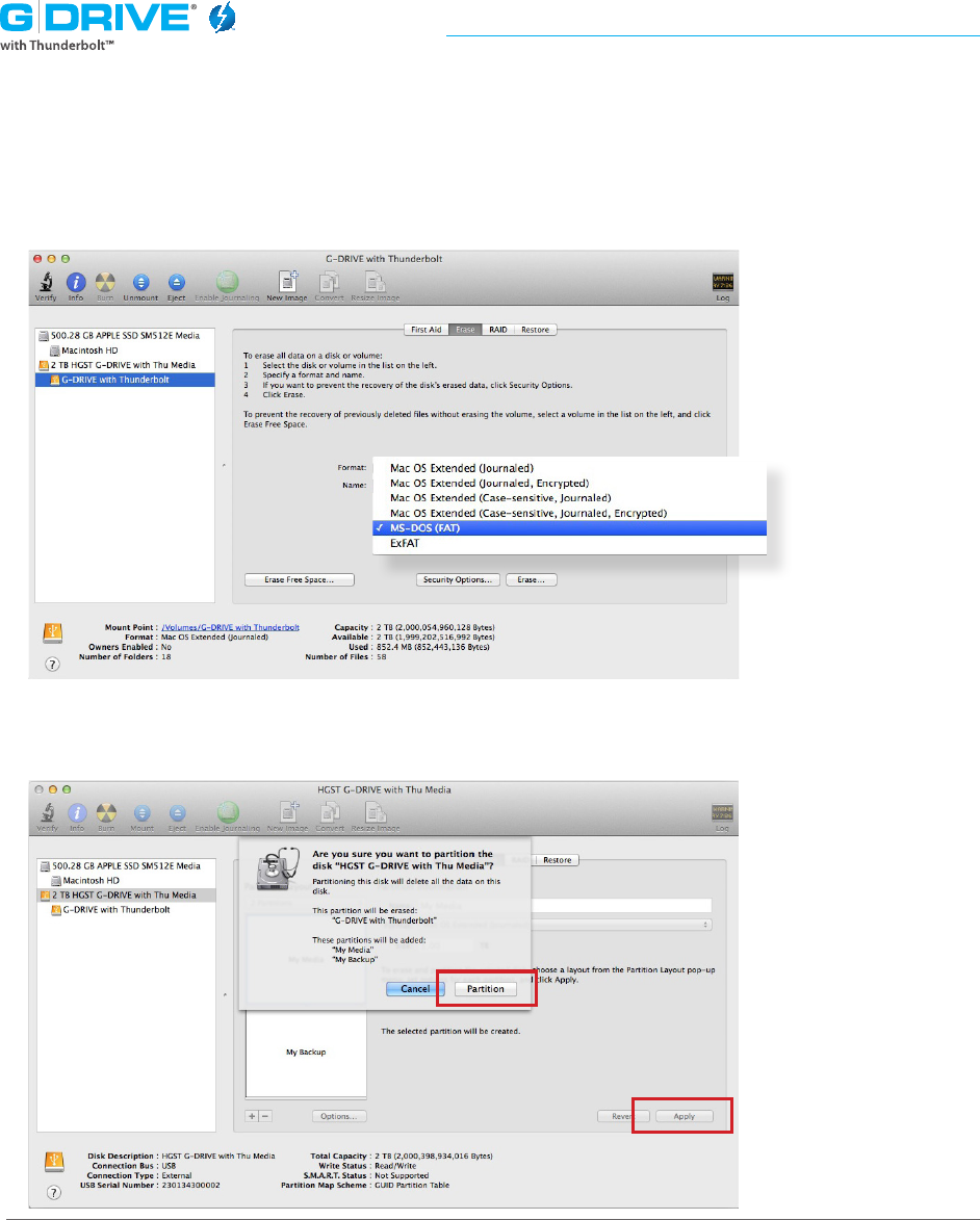 appear asking if you want to erase the G-DRIVE with Thunderbolt partition.