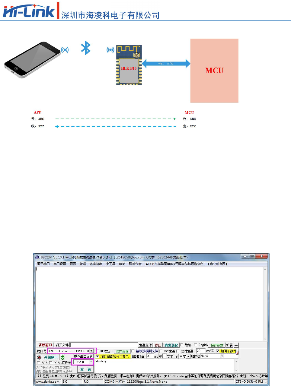 7.3. An example of data Transmission Test between Serial Port and Mobile phone