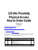 25 kHz Proximity Physical Access How to Order Guide D00530, Release B.6 February 2012 The most current version of this document is always available for download at: www.hidglobal.com/documents/125khz_htog_en.pdf. To check status on your order, go to: www.hidglobal.com > Knowledge Center > Customer Support > Customer Order Status. For Contact cards, 3rd Party Contact-Chips and embeddable cards with or without contact chip, see the Logical Access How to Order Guide.