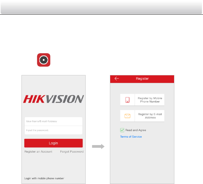 1. Tap the icon to run the software, and tap Register an Account to enter