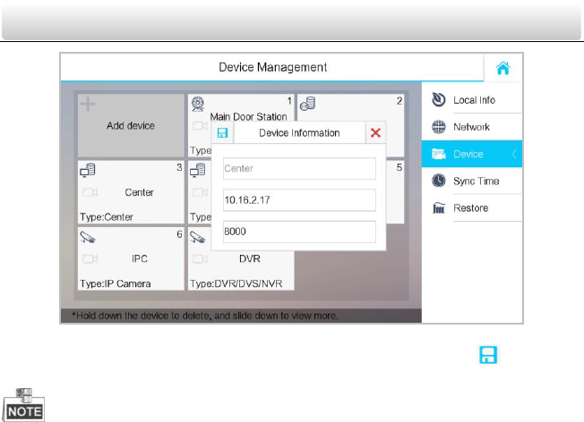 2. Press the Main Door Station tab to pop up the device information dialogue box.