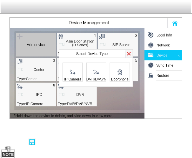 3. Select a kind of device type, and enter corresponding information (device name, IP