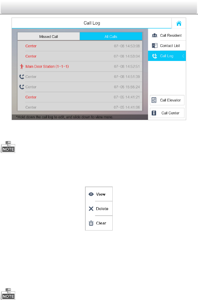 For the DS-KH6210-L, select a piece of call log and press the Confirm key to pop up