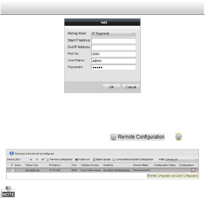 5. Click the OK button to search and add the devices whose IP addresses are within the