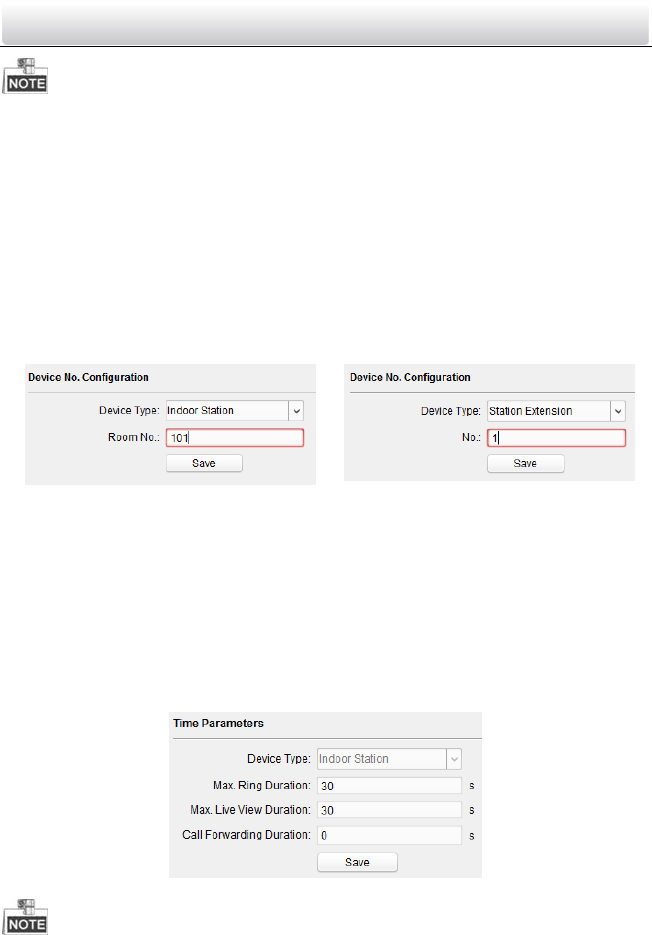 video intercom parameters settings: Device Number Configuration, Time Parameters,