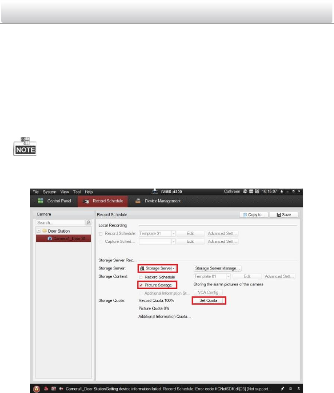 5. Click Set Quota to enter the HDD management interface of the storage server. You