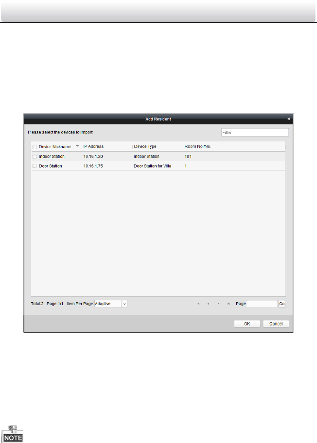 1. Click Add to enter the Add Resident Interface and the video intercom devices added