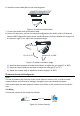 Both wall and ceiling mounting are suitable for the turret camera. Ceiling mounting will be used as an example for this section, and can be used as a reference for wall mounting. Steps: 1. Paste the drill template (supplied) to the desired mounting position on the ceiling. 2. Drill the screw holes and the cable hole in the ceiling according to the drill template. Note: Drill the cable hole if using the ceiling outlet to route the cable. mm 4.2 7 ) 3-Φ (0.1 " Screw Hole m m ) 85 5" Φ 3.3 mm ( 10 ) " Φ1 4.