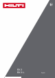 Maintenance • Check all visible parts and controls for signs of damage at regular intervals and make sure that they all function correctly. • Do not operate the cordless tool if signs of damage are found or if parts malfunction. Have the tool repaired by Hilti Service immediately. • After cleaning and maintenance, fit all guards or protective devices and check that they function correctly. To help ensure safe and reliable operation, use only genuine Hilti spare parts and consumables.
