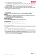 Trouble or fault The spring element is not retensioned, the status indicator flashes green and 4 battery charge status LEDs flash. The spring element is not tensioned and the status indicator flashes red. The spring element is not tensioned and the status indicator lights red. The fastener guide cannot be pressed in and the status indicator lights green. The fastener guide is jammed in the pressed-in state. 10 Possible cause The fastening tool has overheated.