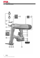 5.2 Removing the battery 1. Switch the fastening tool off. → page 13 2. Press the two release buttons and hold them in the pressed position. 3. Pull the battery out of the power tool to the rear. 5.3 Removing the fastener guide 1. 2. 3. 4. 5. Switch the fastening tool off. → page 13 Remove the battery. → page 10 Pull the nail pusher down until it engages. Unload the magazine. → page 14 Slide the fastener guide locking catch as far as it will go in the direction of the arrow.