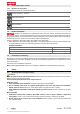 2. Insert the battery, making sure that it engages with an audible click. ◁ When you insert the battery the charge status LEDs show briefly. CAUTION A falling battery presents a hazard. If the battery is not secured correctly it may drop out and fall while the work is in progress. ▶ Always check that the battery is securely seated. 3. Check that the battery is securely seated in the fastening tool. 5.3 Removing the battery 8 1. Switch off the fastening tool. → page 11 2.