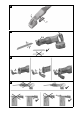 9.1 The reciprocating saw is not in working order Trouble or fault Power tool does not start. Possible cause The battery is not correctly inserted. The battery is empty. The transport lock is engaged. The saw blade can- The locking lever was not be removed from not pushed as far as it the chuck. will go. Chuck clogged by residues from sawing operations. 9.2 Action to be taken ▶ Push the battery in until it engages with a click. ▶ Charge the battery. ▶ Disengage the transport lock.
