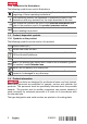 ▶ If work involves break-through, always secure the area on the side opposite where the work is carried out. 2.5 Battery use and care 3 Description ▶ Observe the special guidelines applicable to the transport, storage and use of Li-ion batteries. ▶ Do not expose batteries to high temperatures, direct sunlight or fire. ▶ Do not disassemble, crush or incinerate batteries and do not subject them to temperatures over 80 °C.