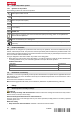 ▶ Check the tool and batteries for damage before use after long periods of storage. 8 Troubleshooting If the trouble you are experiencing is not listed in this table or you are unable to remedy the problem by yourself, please contact Hilti Service. Trouble or fault The power tool doesn’t run. The power tool doesn’t work and all four LEDs blink. The power tool doesn’t work and one LED blinks. Possible cause Action to be taken The battery is not fully inserted. ▶ Low battery.