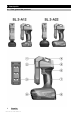 4 Datos técnicos 4.1 Datos técnicos Tensión Luminosidad Peso SL 2-A12 10,8 V 500 lm SL 2-A22 21,6 V 500 lm 0,65 kg (1,43 lb) 1,3 kg (2,9 lb) 5 Manejo 5.1 Preparación del trabajo PRECAUCIÓN Riesgo de lesiones. Arranque involuntario del producto. ▶ Retire la batería antes de realizar ajustes en la herramienta o de cambiar accesorios. Respete las indicaciones de seguridad y las advertencias presentes en esta documentación y en el producto. 5.2 Colocación de la batería PRECAUCIÓN Peligro eléctrico.