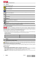 ▶ Dispose of the battery at your Hilti Store, or consult your local governmental garbage disposal or public health and safety resources for disposal instructions. ▶ 10 ▶ Do not dispose of power tools, electronic equipment or batteries as household waste! Manufacturer’s warranty Please contact your local Hilti representative if you have questions about the warranty conditions. 11 Further information For more information on operation, technology, environment and recycling, qr.hilti.