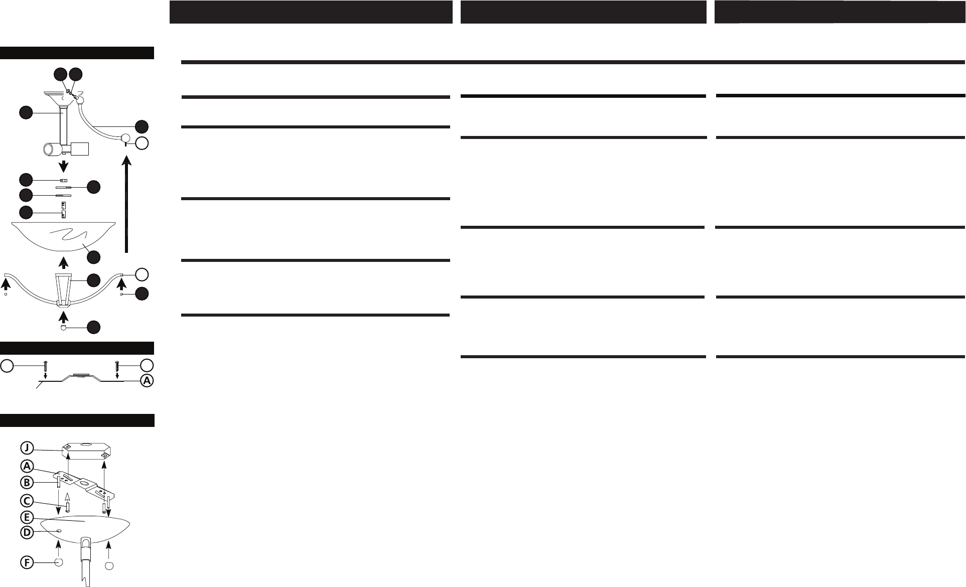 2. Install mounting strap (A) to junction box (J), using the two 1” screws