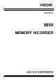 HIOKI 8855 MEMORY HiCORDER GUIDE BOOK Publication date: July 2002 Edition 1 Edited and published by HIOKI E.E. CORPORATION Technical Support Section All inquiries to Sales and Marketing International Department 81 Koizumi, Ueda, Nagano, 386-1192, Japan TEL: +81-268-28-0562 / FAX: +81-268-28-0568 E-mail: os-com@hioki.co.jp URL http://www.hioki.co.