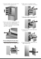 3. Use both hands to open the door more than 90°. Lift it up and take it off. 2. Take out the ice storage box (I) by lifting it up in the direction of the arrow. I 3. Take out the upper freezer drawer (J) by lifting it up from the rail system. J 4. Remove the 4 hex head bolts hinges (E) with an Allen wrench (5/32",4mm). Remove the 2 screws (F) with an Philips Screwdriver. Remove the lower left and right door hinges (G). G F 4. Remove the lower freezer drawer (K) by lifting it up.