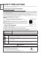 English SAFETY PRECAUTIONS (continued) CAUTION ■ Do not place your fingers into the gap at the opened front door of the unit. ● If your fingers are caught in the front door, you may be injured. ● Do not allow children to touch the front door or play near it. ■ Do not place the unit at a dusty place. It could cause malfunction. ■ Do not cover or block any ventilation holes on the product. The unit would overheat, and it could cause fire or damage the product which may shorten its service life.
