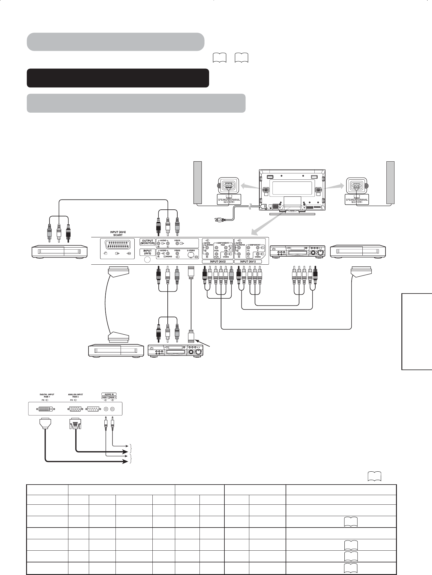 Användbara videosignaler för respektive ingång (Se PRODUKTSPECIFIKATIONERNA för ytterligare information. )