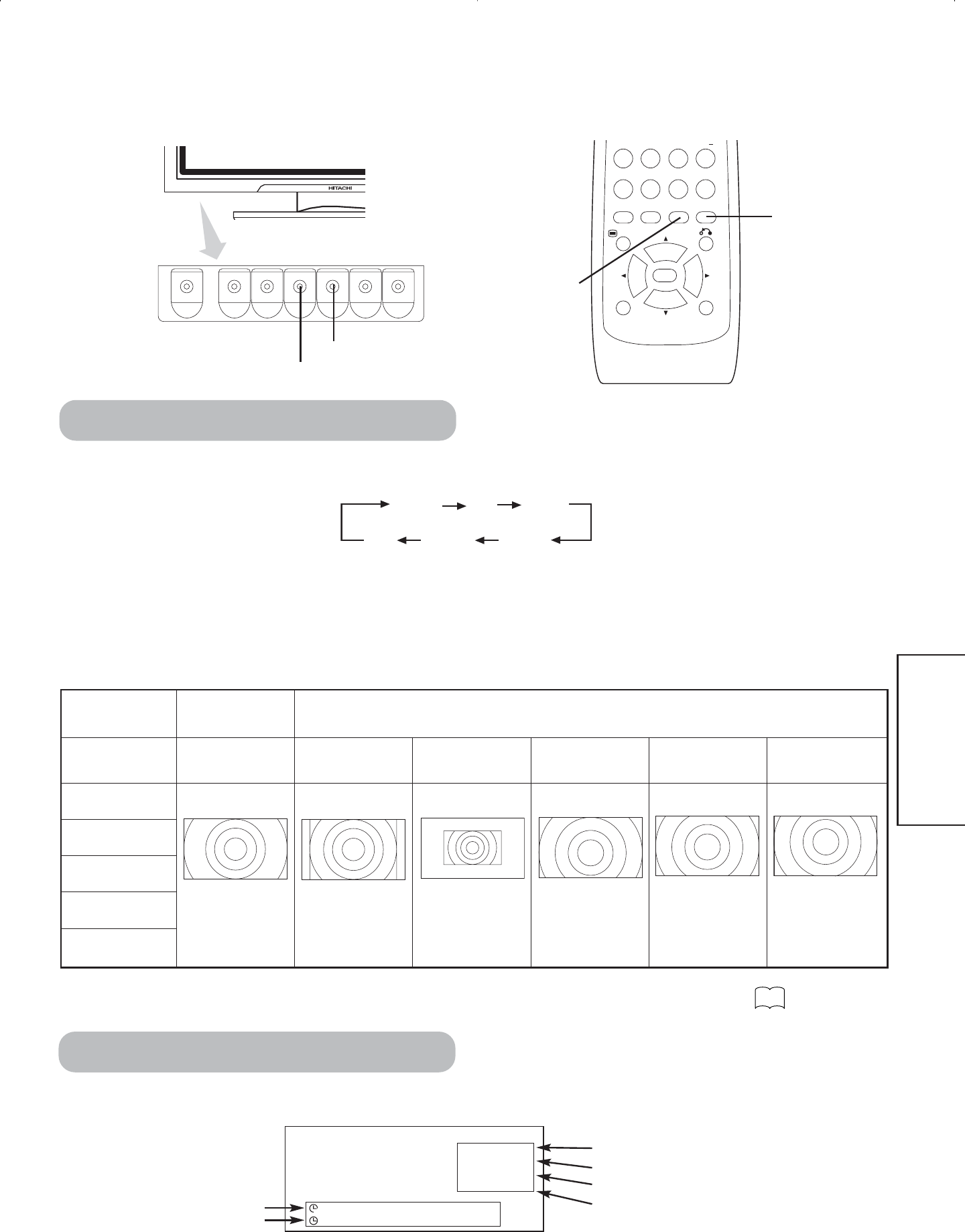 Varje gång du trycker på SIZE på fjärrkontrollen eller skärmen ändras skärmens visningsområde i ordningsföljd och