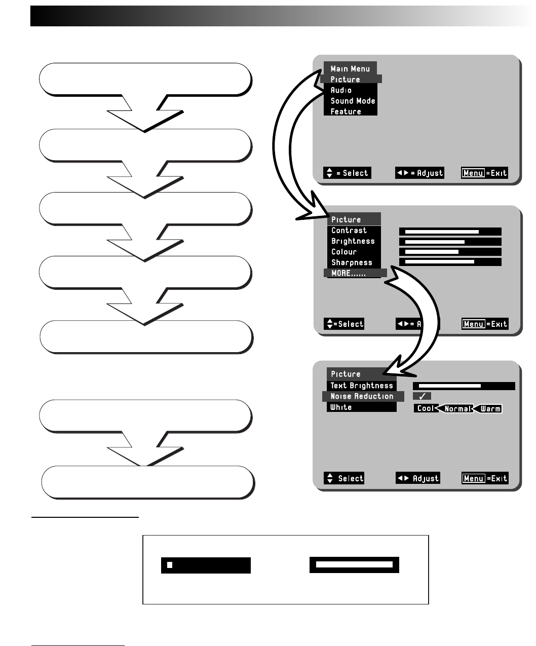 WHITE: This feature controls the colour temperature displayed on the picture tube.