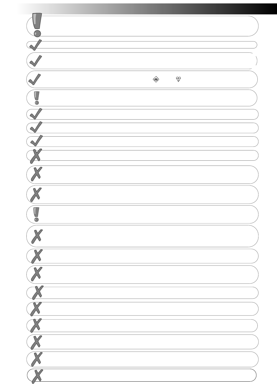 DO NOT place hot objects such as candles or nightlights on, or close to, equipment.