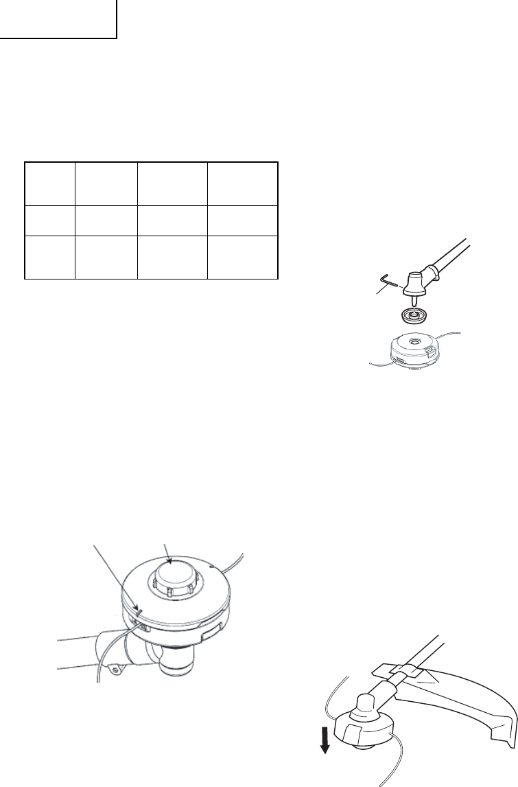 nylon Hitachi. N’utilisez jamais de fi l métallique ou