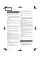 English Fuel ○ Always use branded 89 octane unleaded gasoline. ○ Use genuine two-cycle oil or use a mix between 25:1 to 50:1, please consult the oil bottle for the ratio or Hitachi dealer. ○ If genuine oil is not available, use an anti-oxidant added quality oil expressly labeled for air-cooled 2-cycle engine use (JASO FC GRADE OIL or ISO EGC GRADE). Do not use BIA or TCW (2-stroke water-cooling type) mixed oil. ○ Never use multi-grade oil (10 W/30) or waste oil.