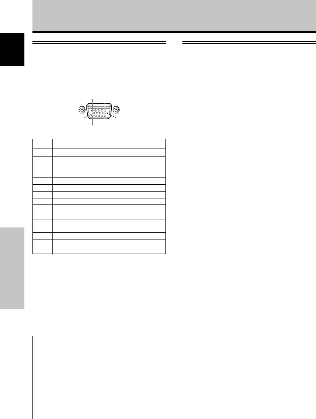 Signal assignment of INPUT 1 (Mini D-sub 15 pin