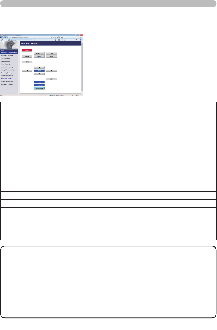 • The [PAGE DOWN] and [PAGE UP] buttons on the Web Remote Control