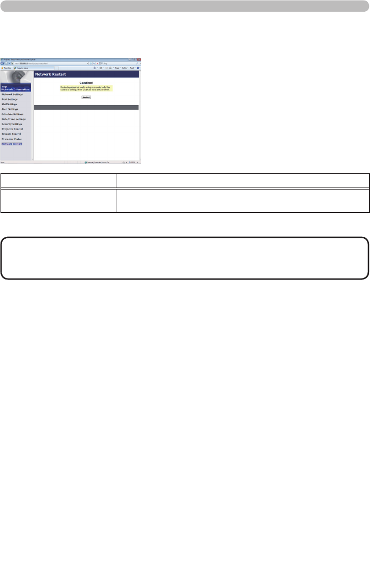 Restarts the projector’s network connection.