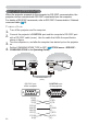 Command Control via the Network &RPPDQG &RQWURO YLD WKH 1HWZRUN :KHQ WKH SURMHFWRU FRQQHFWV QHWZRUN WKH SURMHFWRU FDQ EH FRQWUROOHG ZLWK 56 & FRPPDQGV IURP WKH FRPSXWHU ZLWK ZHE EURZVHU )RU GHWDLOV RI 56 & FRPPDQGV UHIHU WR 56 & &RPPXQLFDWLRQ 1HWZRUN FRPPDQG WDEOH ( 19). NOTE ,I GDWD LV WUDQVIHUUHG YLD ZLUHOHVV DQG ZLUHG /$1 DW WKH VDPH WLPH WKH SURMHFWRU PD\ QRW EH DEOH WR SURFHVV WKH GDWD FRUUHFWO\ Connection 1.