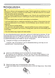 Instellen De voeding aansluiten WAARSCHUWING ŹWees extra voorzichtig tijdens het aansluiten van het netsnoer. Onjuiste of foutieve aansluitingen kunnen leiden tot BRAND en/of ELEKTRISCHE SCHOKKEN. • Gebruik alleen het netsnoer die bij de projector geleverd zijn. Is het snoer beschadigd, neem dan contact op met uw leverancier en vraag om een nieuw snoer. 6WRS KHW QHWVQRHU DOOHHQ LQ VWRSFRQWDFWHQ GLH YROGRHQ DDQ KHW VSHFL¿HNH voltage. • Wijzig het netsnoer niet.