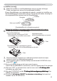 Als de projector aan het plafond is bevestigd, of als de lamp