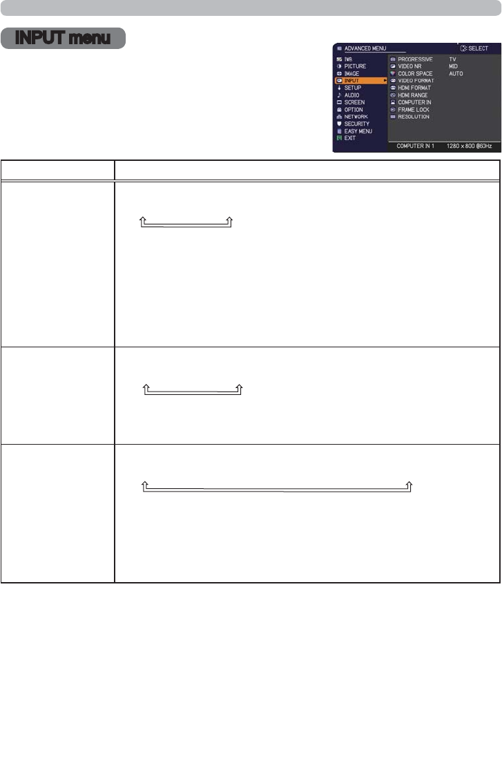 )URPWKH,1387PHQXLWHPVVKRZQLQWKHWDEOH
