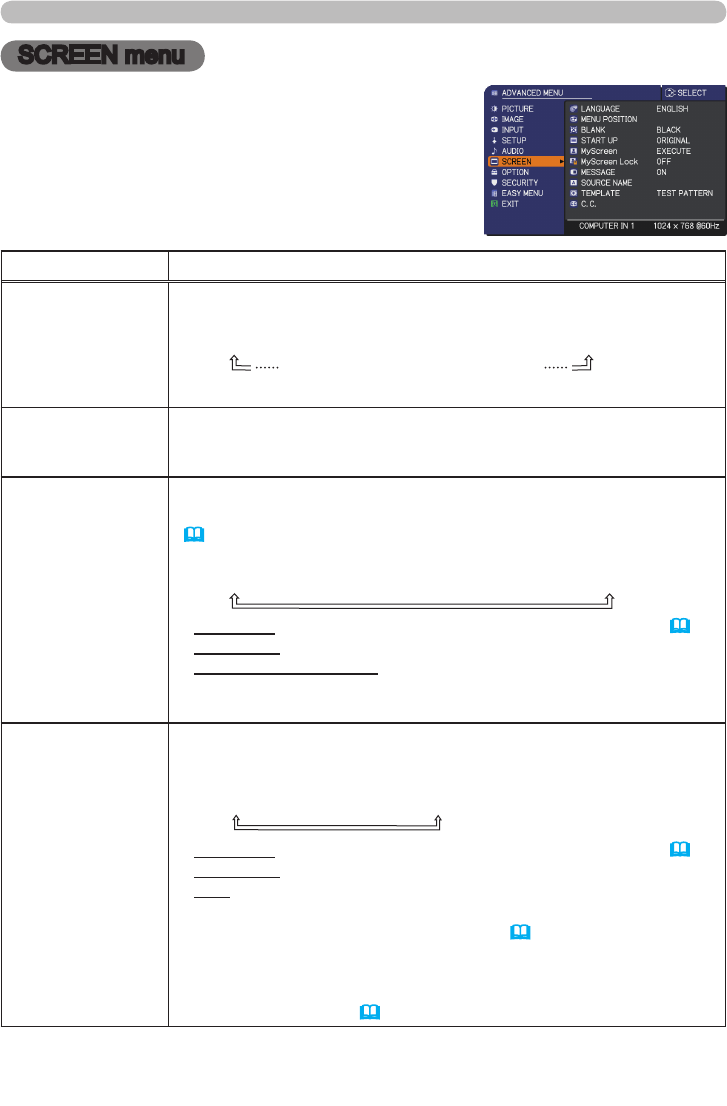 Using the ▲/▼ buttons switches the mode for the blank screen.