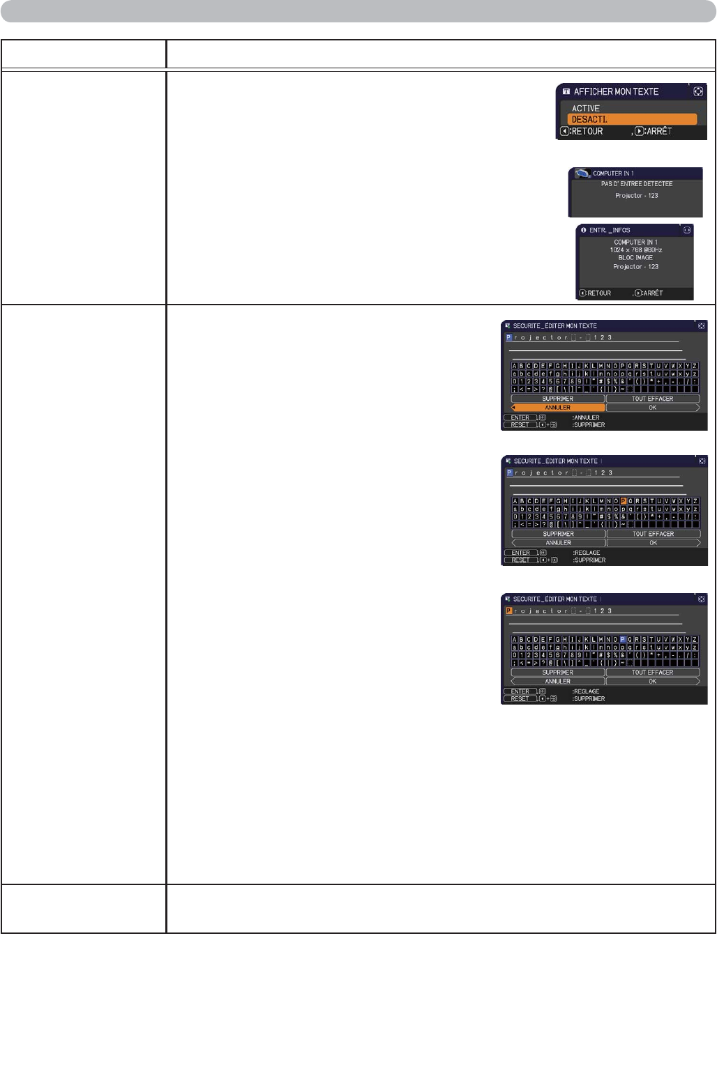sur ANNULER sur l’écran et appuyer sur la touche ◄, ENTER ou INPUT.