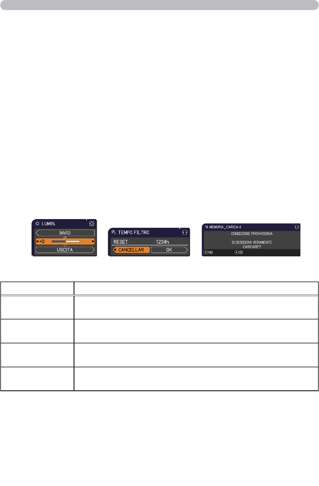 premere il cursore ◄ oppure il pulsante ESC sul telecomando.