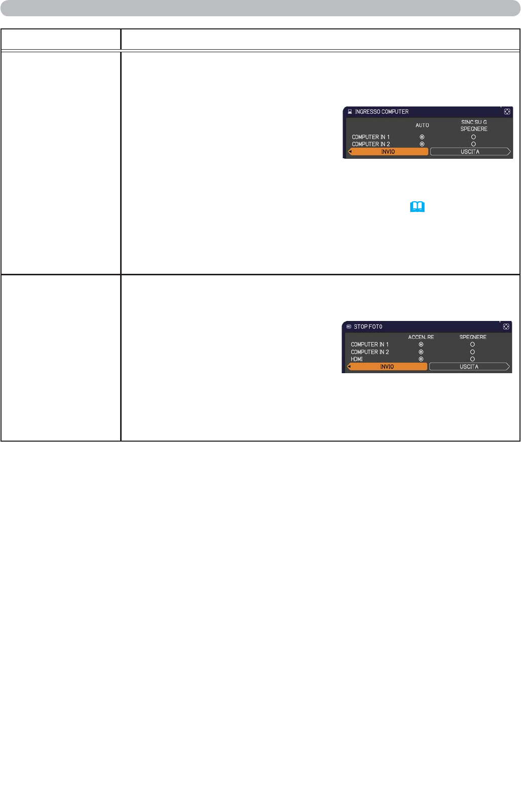 il segnale. Selezionare quindi SYNC SU G - SPEGNERE e