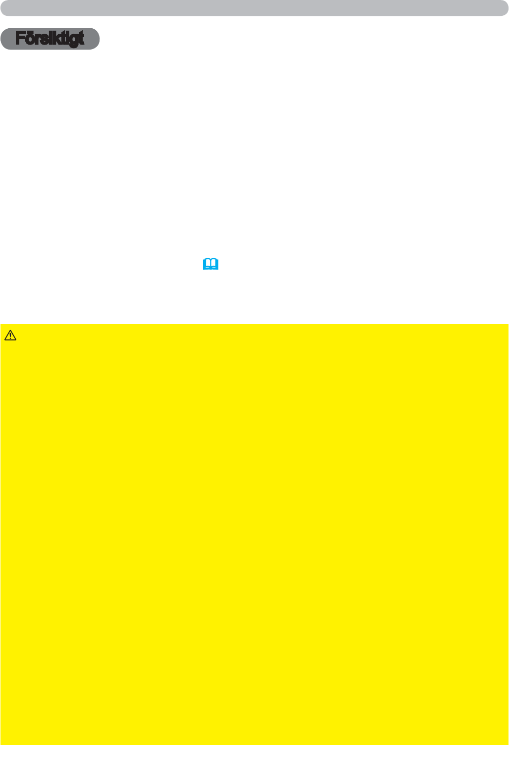 strömtillförsel till projektorn och dra ut nätkabelns kontakt ur uttaget. Rör inte vid den